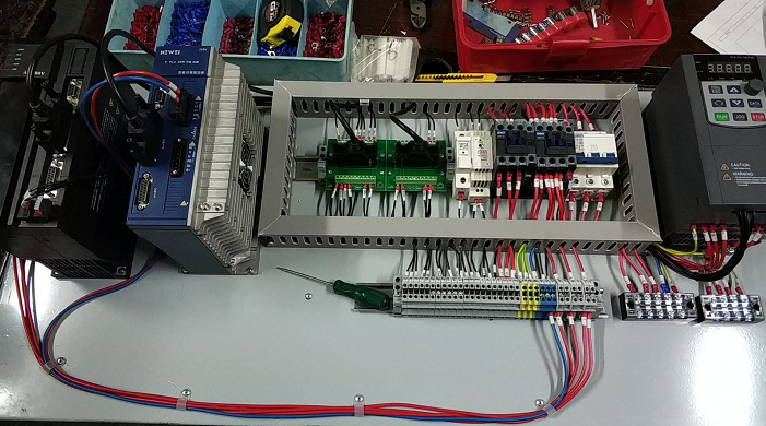 调直切断机系统用到了电子凸轮运动功能,主流系统控制方案为触摸屏、运动控制器、送料伺服、飞剪伺服。 华体(中国)智能伺服集伺服驱动、PLC控制、运动控制于一体,正好适用于调直切断机系统。华体(中国)智能伺服调直切断机系统方案为触摸屏、飞剪智能伺服、送料智能伺服。