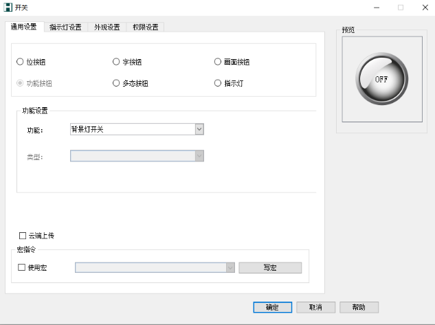 开关——功能开关 定义 功能开关按钮在整个触摸屏中是很重要的控件,通过功能按钮可以很方便快捷的达到各种功能要求。 属性图