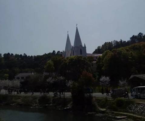 遥遥相对的是新落成的哥特式黄石天主教堂,坐落于团城山公园西侧,睡美人山北侧,三面青山环抱,临磁湖碧波万顷,藏城中却远尘嚣,最为修心养性之所,远远望去,那象牙式的(仿)哥特式尖顶建筑,衬差红瓦绿树倒映在碧绿中,显得格外幽静肃穆。