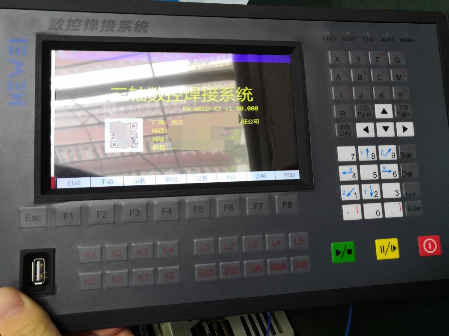 3、功能完整的按键,七寸真彩液晶屏,所有的操作和显示都能在一块控制板上完成,也可使用无线外接按键板或是手脉进行操作。