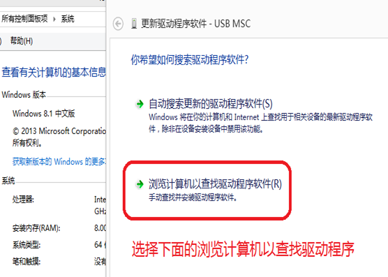 6、首先选择下面的“浏览计算机以查找驱动程序软件”,如下图: