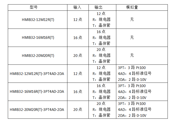 附:7寸HMIB32系列触摸屏PLC一体机选型表