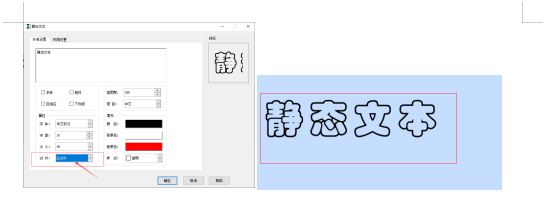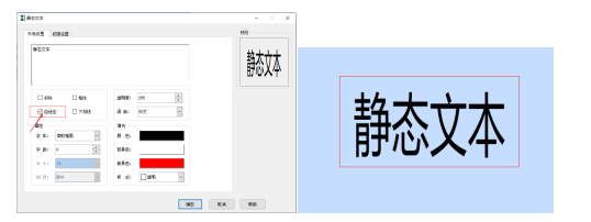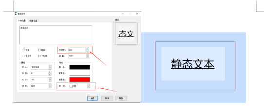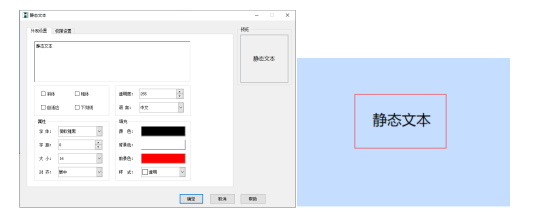 方框内可以设置文本内容,如设置“静态文本”,下图所示: