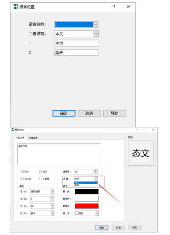 语言:当系统参数中的语言设置了两种以上时,可在此选项选用其它语言,如下图设置了英文: