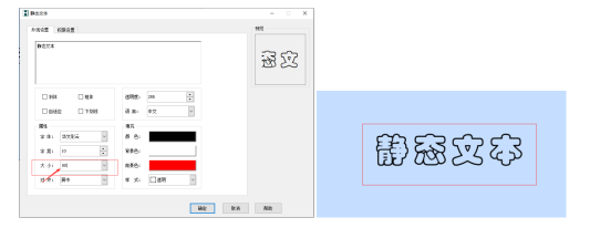 大小:设置静态文本的文本字体大小,如下图大小为56: