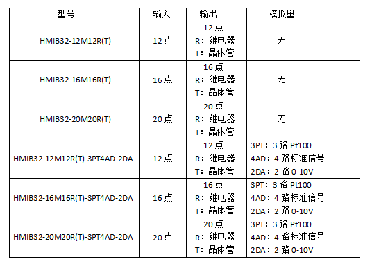 附:7寸HMIB32系列触摸屏PLC一体机选型表