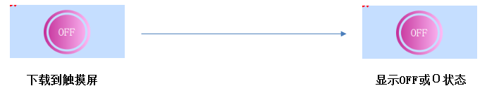 复位:下载到触摸屏后,触摸/点击该按钮把写入地址的值置成0,并显示0/OFF状态