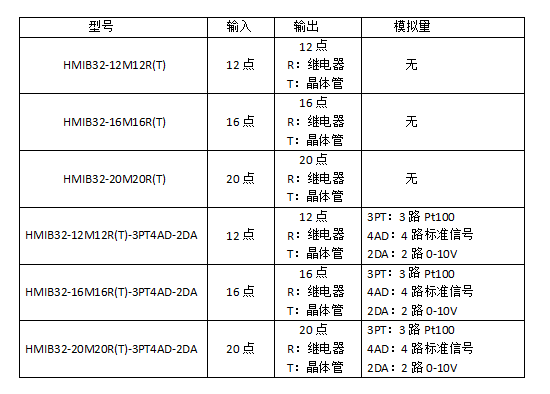 附:7寸HMIB32系列触摸屏PLC一体机选型表