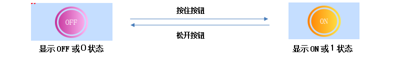 点动:下载到触摸屏后,按住该按钮把写入地址的位置为1/ON,松开该按钮则把写入地址的位置为0/OFF
