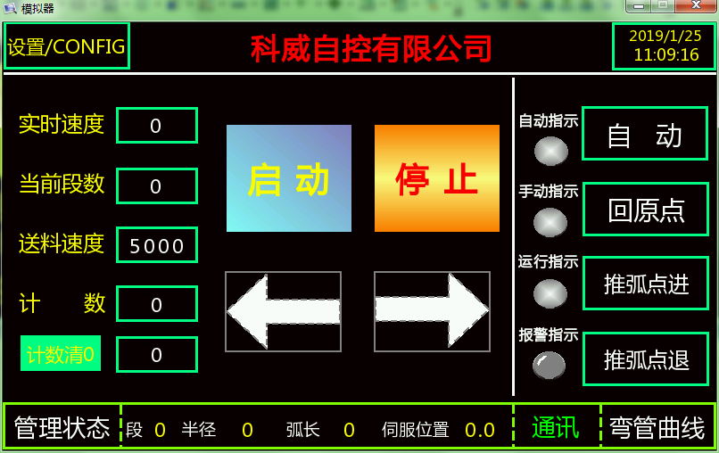 自动运行过程中每段对应的参数实时显示(如当前段数、推弧半径、当前段弧长、伺服绝对位置),便于用户调试与观测;